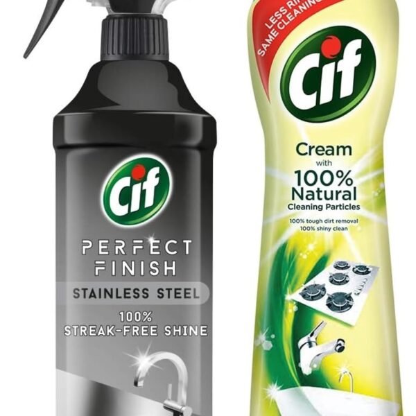 CIF Perfect Finish Stainless Steel Cleaner| Removes Tough Dirt 435ml (pack of 1) & Cif Abrasive Surface Cleaner Cream, Lemon, 500 ml COMBO – Fast Shipping to USA & Canada