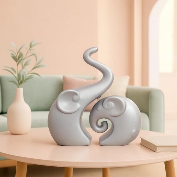 Xtore Lavish Silver Home Decor Elephant Couple | Ceramic Figurines (Set of 2, Silver Matte) – Fast Shipping to USA & Canada