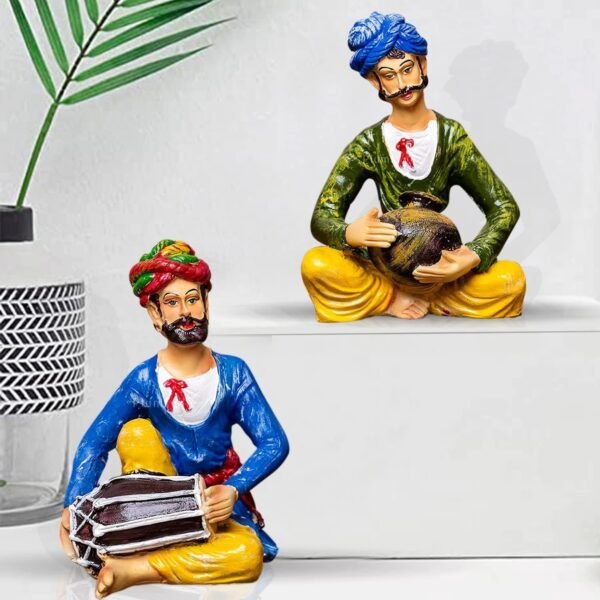 Xtore Resin Rajasthani Traditional Musical Duo | Decorative Showpiece for Home Decor (Pack of 2, Multicolor) – Fast Shipping to USA & Canada