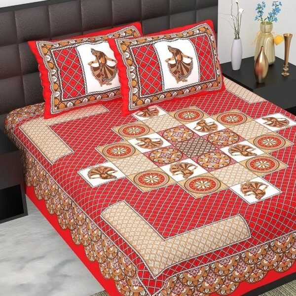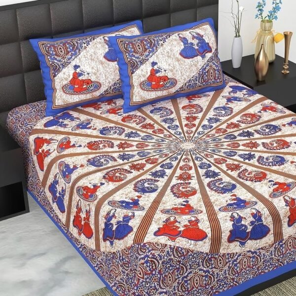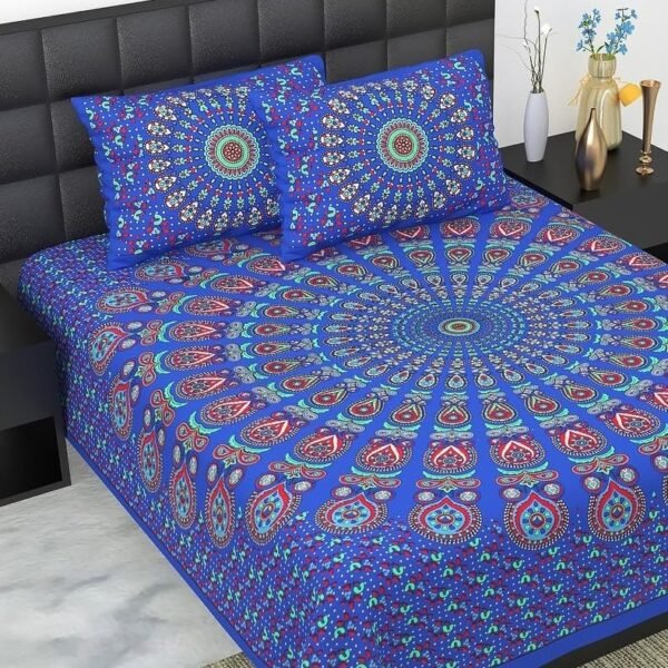 100% Cotton bedsheet Double Bed Jaipuri Rajasthani Fabric Multicolor Cotton Bedsheet Bazar with 2 Pillow Covers – MultiColors012 – Fast Shipping to USA & Canada