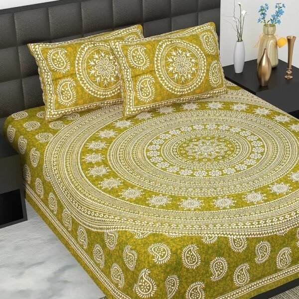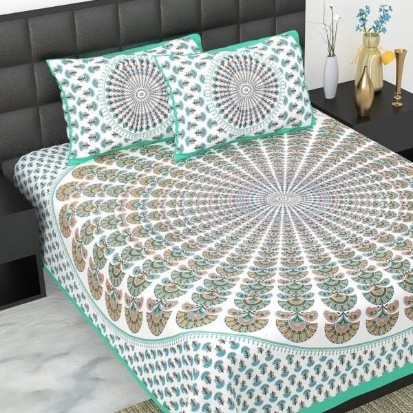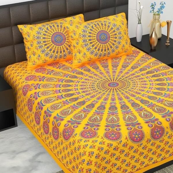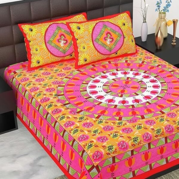 100% Cotton bedsheet Double Bed Jaipuri Rajasthani Fabric Multicolor Cotton Bedsheet Bazar with 2 Pillow Covers – MultiColors052 – Fast Shipping to USA & Canada