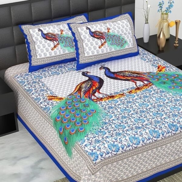 100% Cotton bedsheet Double Bed Jaipuri Rajasthani Fabric Multicolor Cotton Bedsheet Bazar with 2 Pillow Covers – MultiColors029 – Fast Shipping to USA & Canada