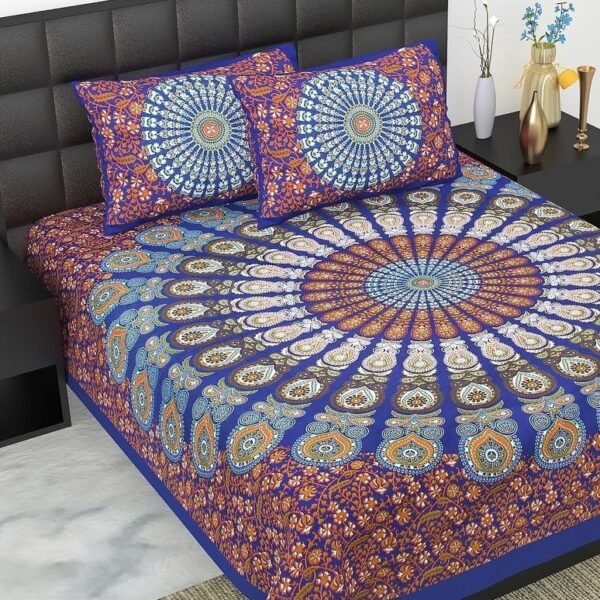 100% Cotton bedsheet Double Bed Jaipuri Rajasthani Fabric Multicolor Cotton Bedsheet Bazar with 2 Pillow Covers – MultiColors103 – Fast Shipping to USA & Canada