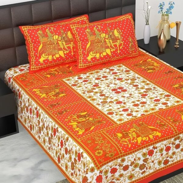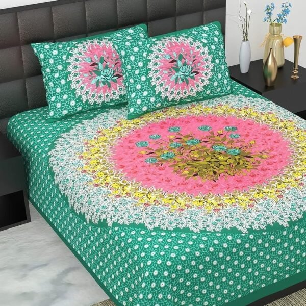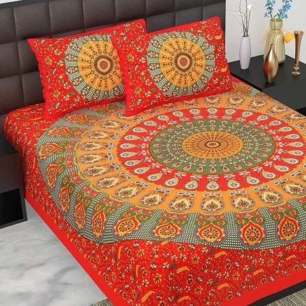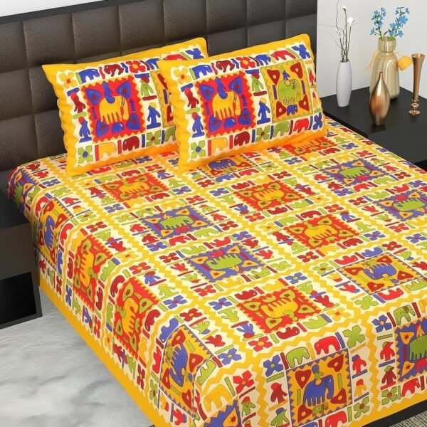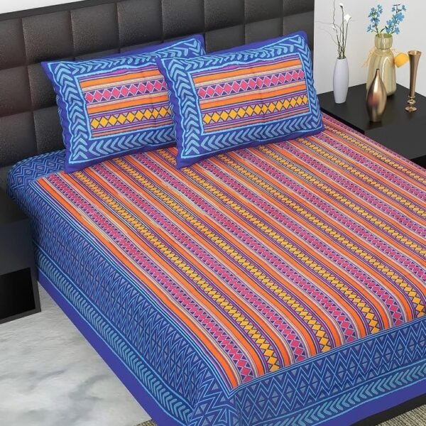 100% Cotton bedsheet Double Bed Jaipuri Rajasthani Fabric Multicolor Cotton Bedsheet Bazar with 2 Pillow Covers – MultiColors129 – Fast Shipping to USA & Canada