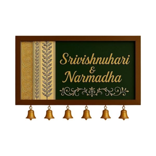 Webelkart Wooden Customised House Name Plate With Golden Bell For Home Entrance Outdoor – Door name plates | Name Plate Office Entrance (14 x 10 inches) Customized name plate – Fast Shipping to USA & Canada
