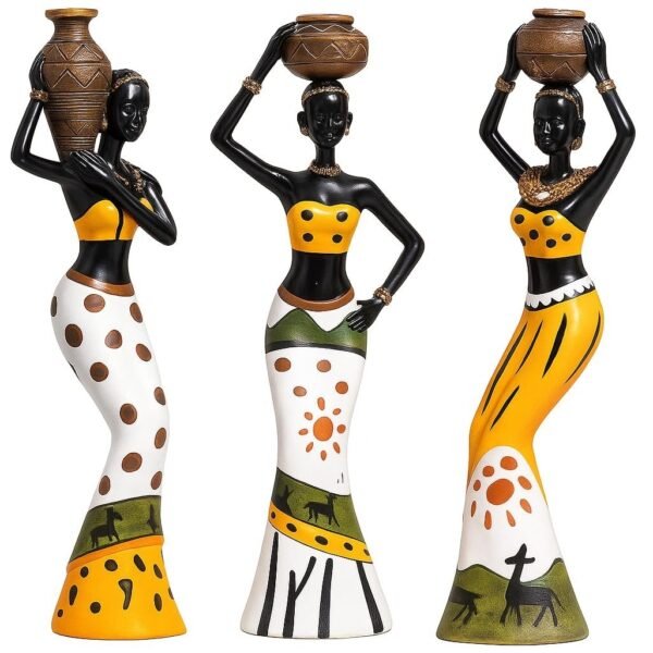 Xtore Beautiful Finish Uniquely Hand Crafted Home Dcor African Tribal Women Art Piece Handicraft Resin (Set of 3, Multicolour) – Fast Shipping to USA & Canada
