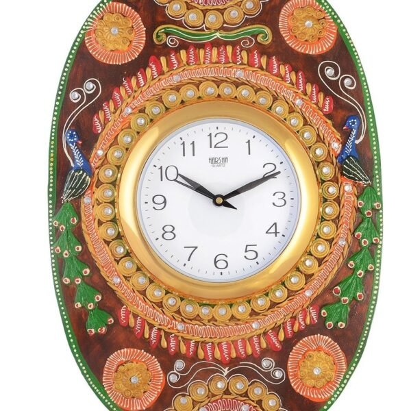 JaipurCrafts Oval Kundan Studded Wood Wall Clock, 30×2.54×45.72 cm, Multicolour – Fast Shipping to USA & Canada