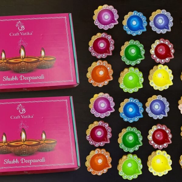CraftVatika 24 Clay Diyas for Diwali Festival | Terracotta Diya Set Deepak Batti Diya | Diwali Decoration Items for Home | Handmade Mitti Colourful Diyas for Puja – Fast Shipping to USA & Canada