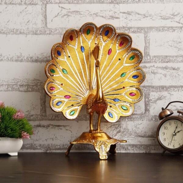 JaipurCrafts Premium Aluminum Minakari Peacock Figurine Showpiece (Golden, 12 inch) – Fast Shipping to USA & Canada