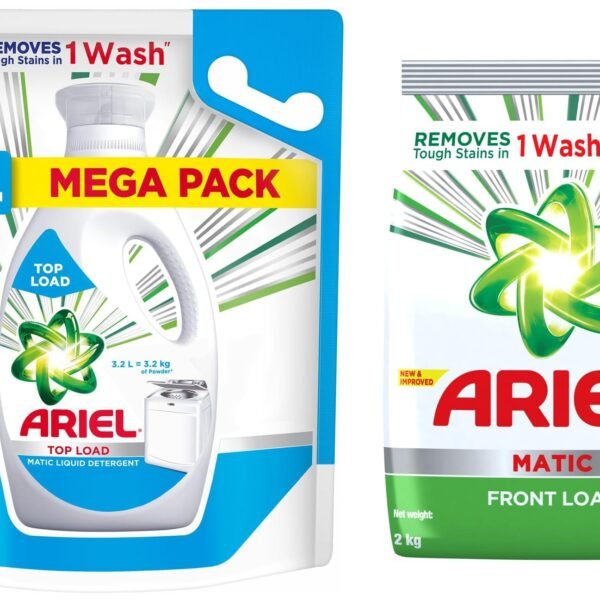 Ariel Top Load Matic Liquid Detergent 3.2 Ltr & Ariel Matic Front Load Detergent Washing Powder – 2 kg – Fast Shipping to USA & Canada