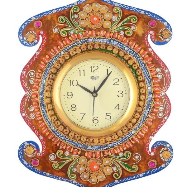 JaipurCrafts Wood Handcrafted Kundan Studded Wall Clock (Multicolour, 11.8 Inch X 0.4 Inch X 16.9 Inch) – Fast Shipping to USA & Canada