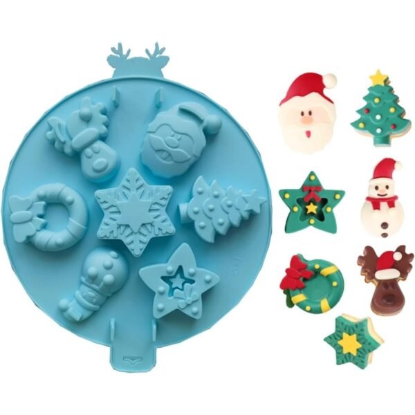 LEGACYCART 7-Cavities Christmas Chocolate Mould, Candy Baking, 3D Snowflake, Snowman Xmas Tree, Star, Reindeer, Santa Claus Face, Wreath Shape Mold for DIY Handmade Soap Candles Jelly Fondant, Gummy – Fast Shipping to USA & Canada