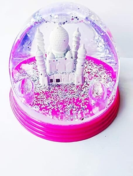 Taj Mahal Showpiece in Water and Glitters- Pink – Fast Shipping to USA & Canada