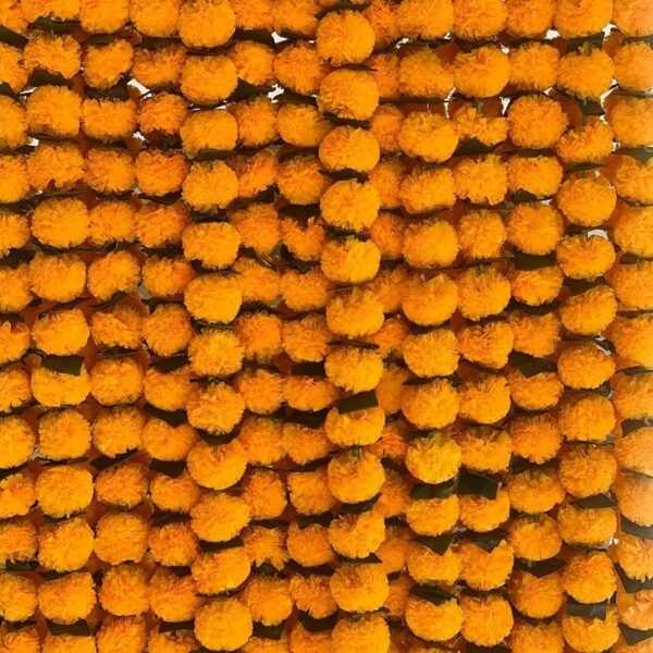 VRB DecTM 5 Pcs Marigold Garlands/Genda Ladi for Decoration – Flower Vines for Ganpati and Home (Orange With Leaf, 5) – Fast Shipping to USA & Canada