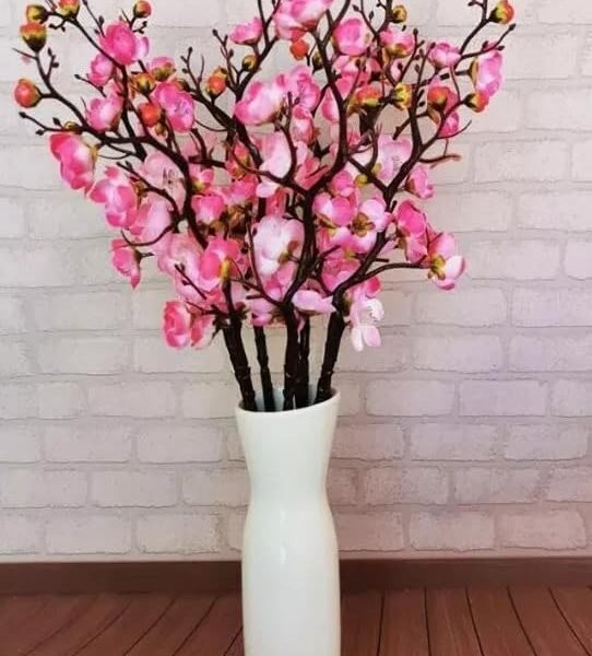 VRB DecTM 3 Pcs Artificial Cherry Blossom Flowers – Fake Plant for Home, Room, Office | Vase Decor | Decoration Items for Living Room (Pink) – Fast Shipping to USA & Canada