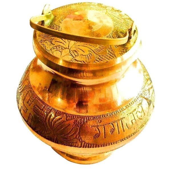 Krushnesh Creations Brass Gangajali with Lid,Color-Yellow,Weight – 114 Gm – Fast Shipping to USA & Canada