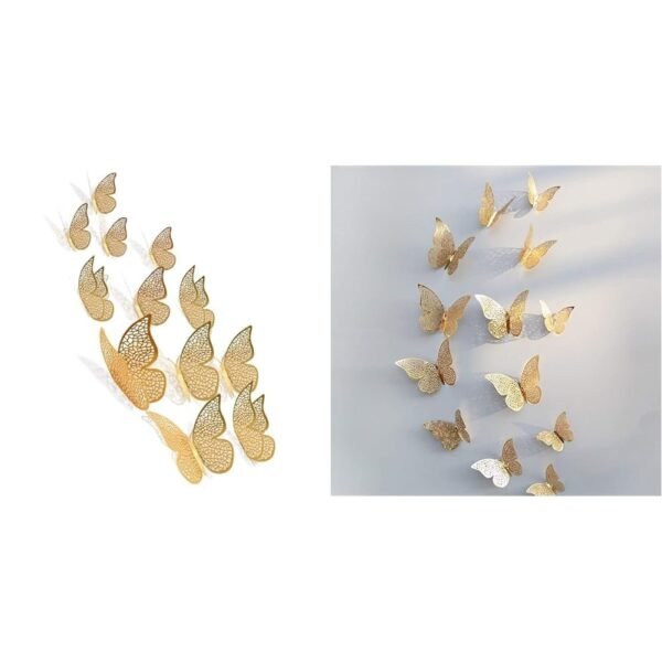 Xtore 12pc 3D Butterfly Wall Stickers, Shimmer Golden – Fast Shipping to USA & Canada