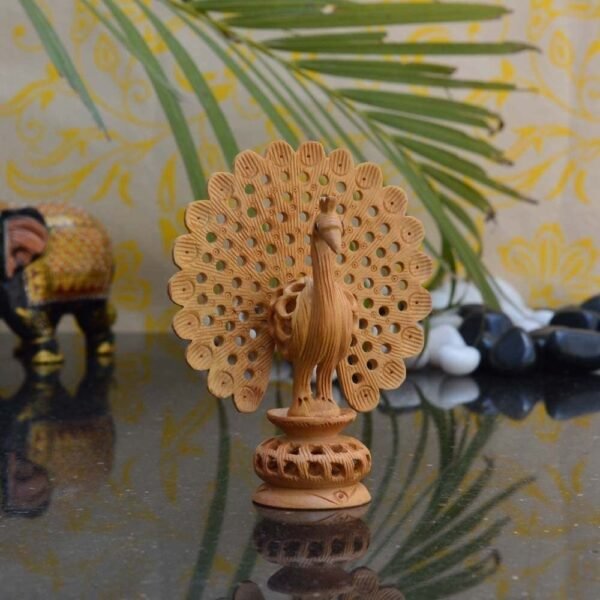 JaipurCrafts Wooden Dancing Peacock Showpiece – (10.2 cm, Brown) – Fast Shipping to USA & Canada