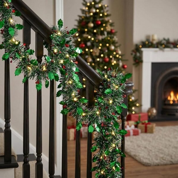 CraftVatika Pack of 2 Christmas Garlands for Xmas Tree Decoration Items, Christmas Tinsel Holly Leaf Garland for Home Office Decor, Home Office, Door, Staircase, Balcony, Party Decoration (2 Pc) – Fast Shipping to USA & Canada