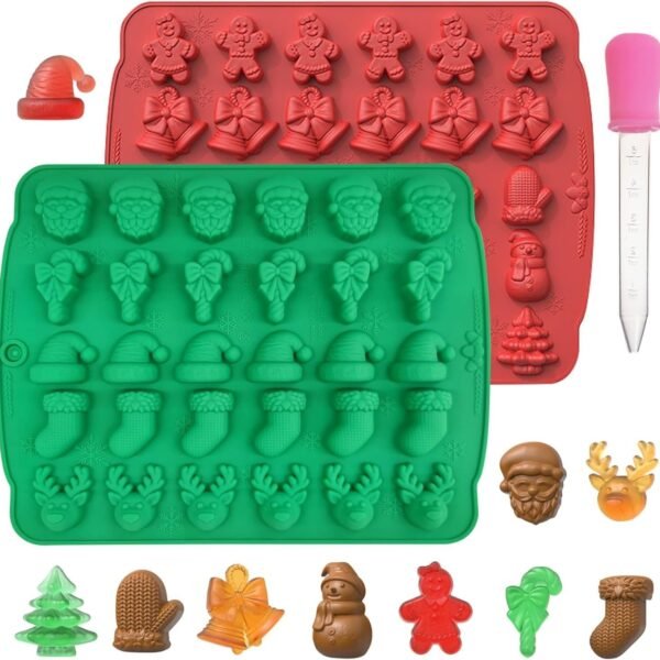 Christmas Chocolate Molds Silicone Gummy Molds Christmas Sock Bell Gingerbread Snowman Glove Cane Candy Molds 2 Pcs 30 Cavity Chocolate Mold for Baking Pastry Gummies Cake Decorating – Fast Shipping to USA & Canada