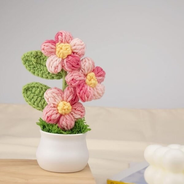 VRB Dec Plastic TM 1 Pcs Crochet Flowers Artificial Daisy for Office Desk Car Dashboard Decor,Home Decoration, Office, Bedroom, Christmas Decor, Wedding,Diwali. (Triple Pink Daisy with Pot) – Fast Shipping to USA & Canada