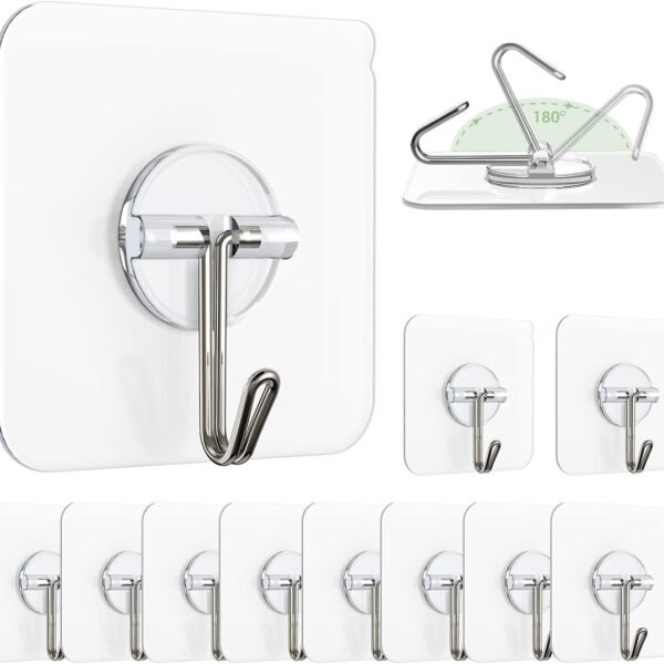 Zulaxy Hanging Hooks Without Drilling, 10 Pack Self Adhesive Hooks for Wall Heavy Duty Strong Nail Free, Kitchen Accessories Items (Hanging Hook, Transparent) Stainless Steel – Fast Shipping to USA & Canada