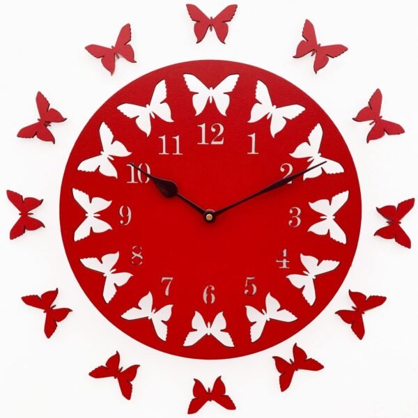 Sehaz Artworks Wooden Wall Clock for Home Stylish Wall Clocks for Living Room – 12 Butterflies Red – Fast Shipping to USA & Canada