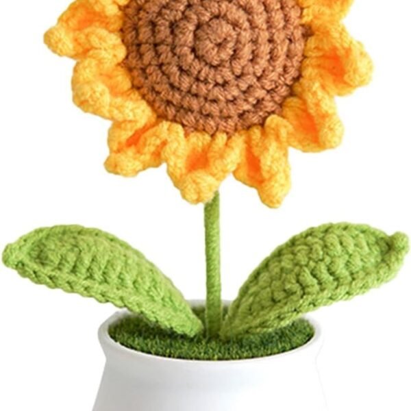 VRB DecTM 1 Pcs Crochet Flowers Artificial Sunflower for Office Desk Car Dashboard Decor,Home Decoration, Office, Bedroom, Christmas Decor, Wedding (Sunflower Pot) – Fast Shipping to USA & Canada