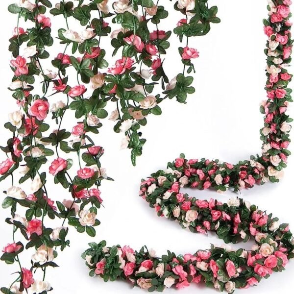 VRB Dec 2 Pcs Artificial Flowers Vine Silk Roses Garland Fake (6 ft Long) Flowers Silk Roses Garland for Wedding Decorations Diwali/Ganpati/Christmas Garden Wall Valentine (Pink Combo Rose Garland) – Fast Shipping to USA & Canada
