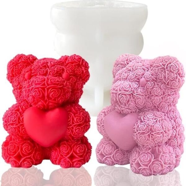 Silicone Valentine’s Day Candle Mold Rose Teddy Bear Holding Heart Making Scented Candle Wax Melts Home Decor Candles Resin Casting Handmade Couple Gift DIY Soap Making Wedding Decor – Fast Shipping to USA & Canada