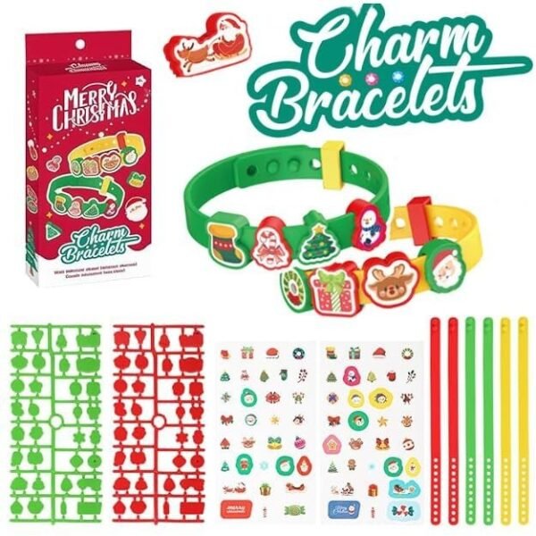 PATPAT DIY Christmas Gift for Kids Bracelet Fashion Rubber Wrist Band Making Kit Festive Friendship Wristlets Charm, Assorted Christmas-Themed Cartoon Charm Designs, Fun Festive Party Activity Gift – Fast Shipping to USA & Canada