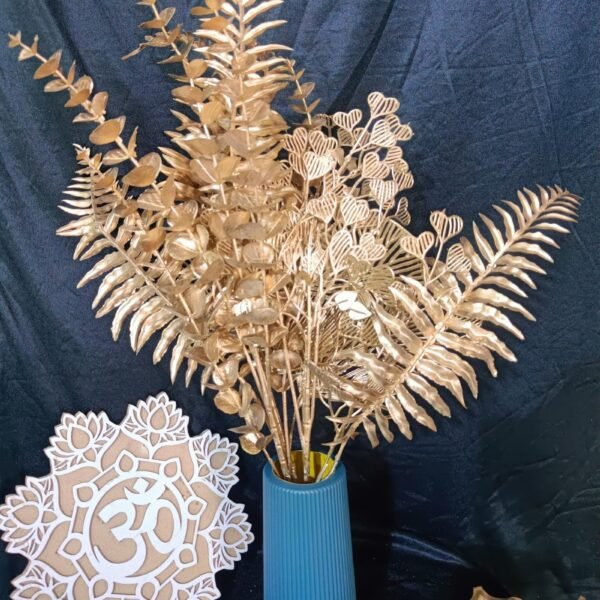 VRB Dec Plastic TM 4 Pcs Artificial Eucalyptus Gingko Leaves Fern Faux Flowers Fake Flower for Diwali/Christmas/Home,Office Corner,Bedroom,Balcony,Decor,Restaurant Decor and Craft (4 Pcs Golden Set) – Fast Shipping to USA & Canada