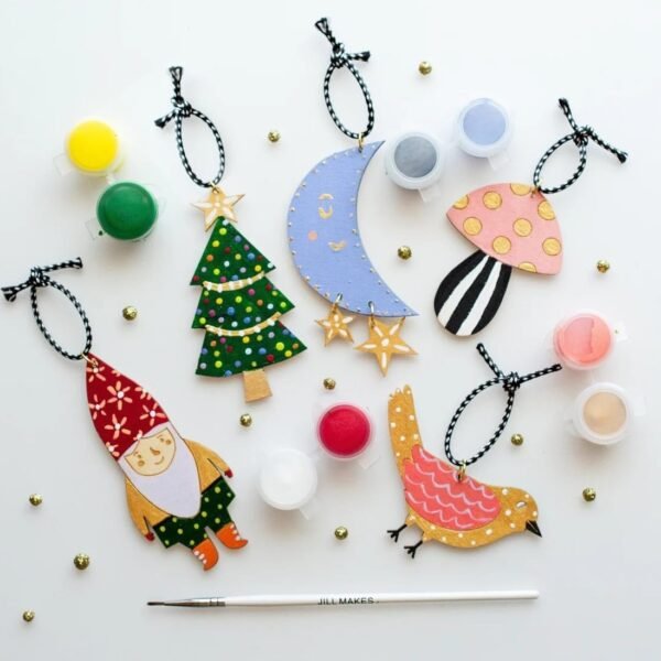 Curious Button Pack of 5 DIY Christmas Ornament Painting Kit | Christmas Tree Decoration | Wooden Christmas Tree Oranaments Hanging Items for DIY Xmas Decoratios | 4 Inch – Fast Shipping to USA & Canada
