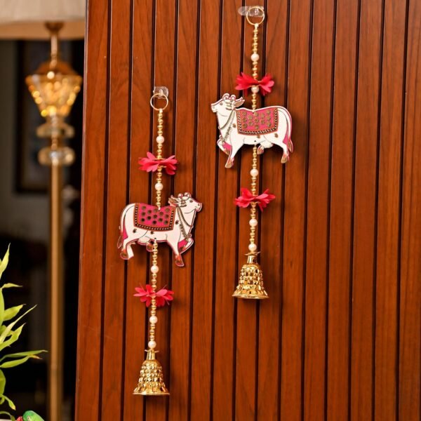 CraftVatika Pichwai Cow Wall Decor Hanging Latkan for Door Wall Decoration, Diwali Decor Items Diwali Decoration for Home, Festive Decor Items, Pichwai Backdrop Cow with Bell Hanging 14.5 Inch Height – Fast Shipping to USA & Canada