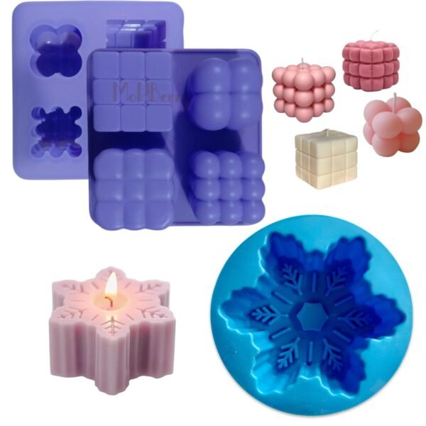 MoldBerry Silicone Candle Mould Combo | 3D Bubble & Snowflake Candle Molds for Candle Making | Christmas, Diwali & Gift Set | Reusable DIY Soy Wax Candle, Baking, Jelly, Soap Moulds ? Pack of 2 – Fast Shipping to USA & Canada