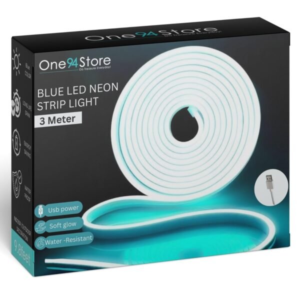 One94Store LED Neon Strip Light 3M – USB Powered, Flexible Waterproof Rope Light DC 5V with Button Switch | Ambient LED Lighting for Home, Bedroom, DIY Decor, Party & Gaming Room (Blue) – Fast Shipping to USA & Canada