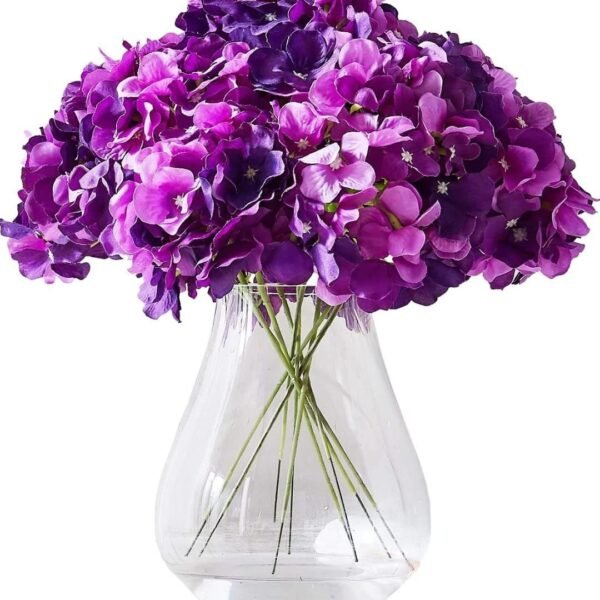 VRB DecTM (Pack of 10) Hydrangea Silk Fake Flowers Heads with Stems for Decoration Wedding Home Party Shop Baby Shower, Room Decor for Bedroom Aesthetic [WiITHOUT VASE] (Shaded Purple) – Fast Shipping to USA & Canada