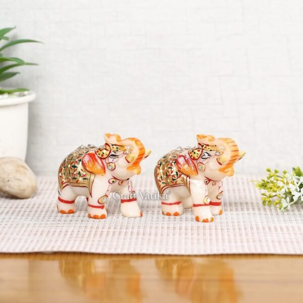 CraftVatika Handicraft Small Elephant Pair Marble Stone Statue Showpiece Decorative Items, Handpainted Golden Meenakari Elephant Idol Sculpture for Home Decoration, (3 x 2 x 2.5 Inches) – Fast Shipping to USA & Canada