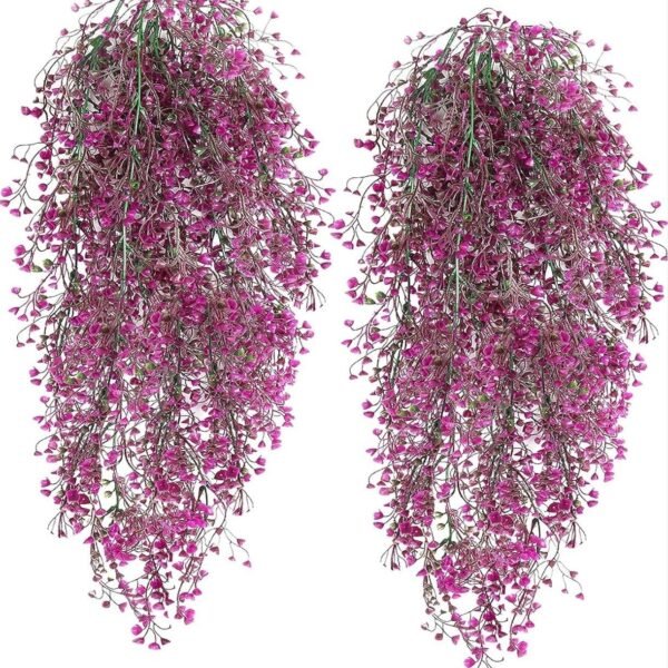 VRB Dec 4 Pcs Artificial Dry Baby’s Breath Greenery Hanging Plants Vines Fake Ivy Hanging Flowers Vine Wall Hanging for Home Decor,Wall,Balcony Decoration. (4, Fushia Baby’s Breath Fern Hanging) – Fast Shipping to USA & Canada