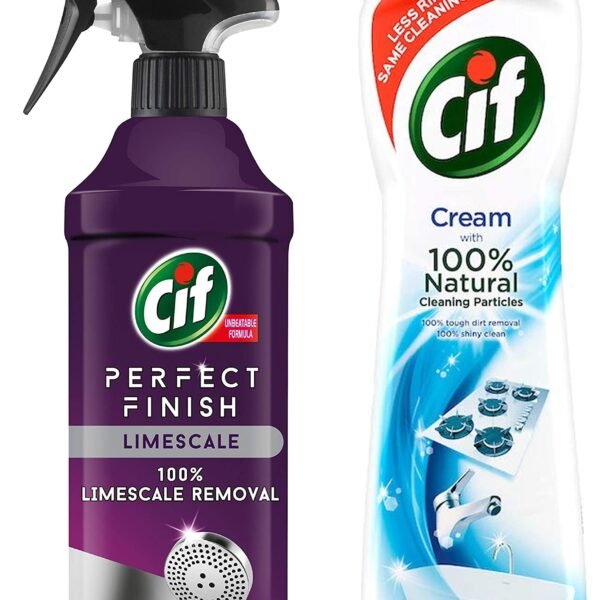 CIF Perfect Finish Limescale Remover Spray & Original Multipurpose Surface Cleaner Cream for Kitchen & Bathroom, Ocean Breeze Scent, 100% Dirt Removal with Natural Cleaning Particles, 500 ml – Fast Shipping to USA & Canada
