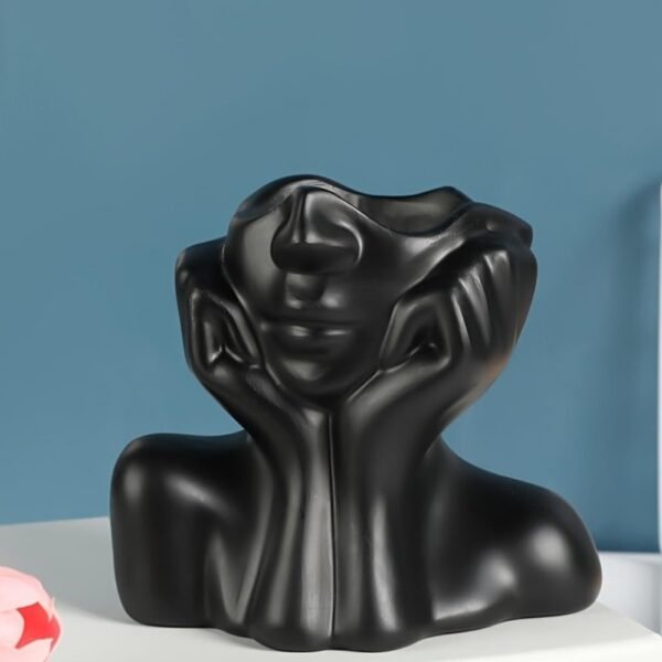 VRB Dec 1 Pcs Vase for Home Decor, Living Room, Office, Bedroom,Centre Table,Ceramic Look Unbreakable Showpiece Flower Pot for Decorations (Only vase, No Flower) Size – 15 cm (Face Design 1 – Black) – Fast Shipping to USA & Canada