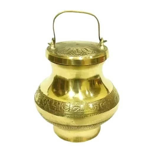 Awadh Creations Gangajal Brass, (Pack of 1) Kalash/lota Brass | Kalash for Pooja, Temple, Brass Gangajal lota (Big Size) with Pure Gangajal 1 Pouch | – Fast Shipping to USA & Canada