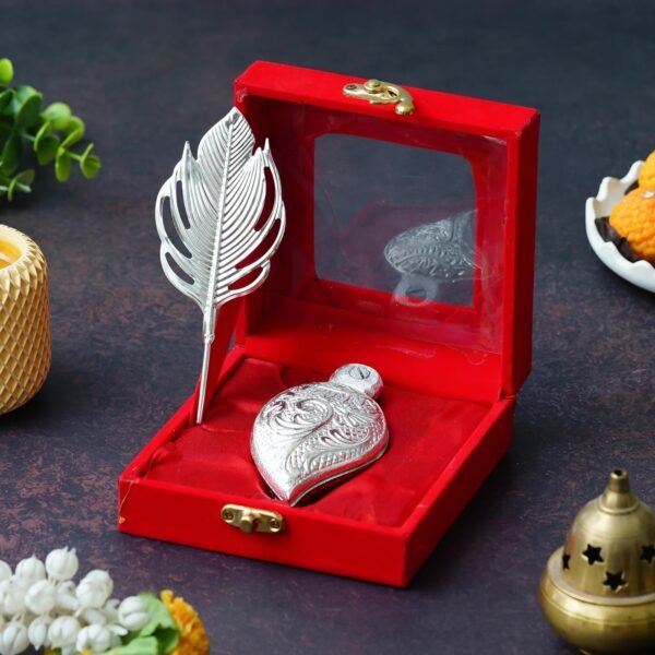 Webelkart Premium Silver Plated Kumkum Box Leaf With Red Velvet Box | roli Tikka Holder for Home and Puja Room (5.11″ Inches) – Fast Shipping to USA & Canada