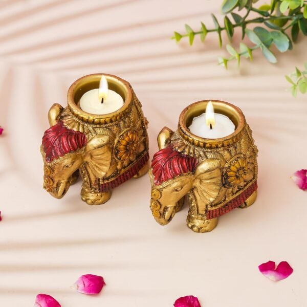Webelkart Elephant Tealight Candle Holder Set of 2 – Decorative Elephant Candle Stand for Home Decor, Pooja & Festive Decoration,Diwali Decor Item Home Decor Item – Fast Shipping to USA & Canada