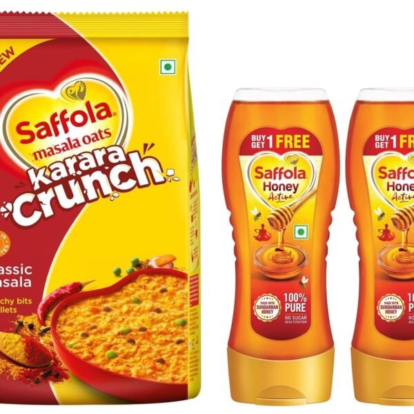 Saffola Honey Active, Made with Sundarban Forest Honey,2 x 350g & Saffola Masala Oats Karara Crunch, Classic Masala with Crunchy Bits and Millets, 500g – Fast Shipping to USA & Canada