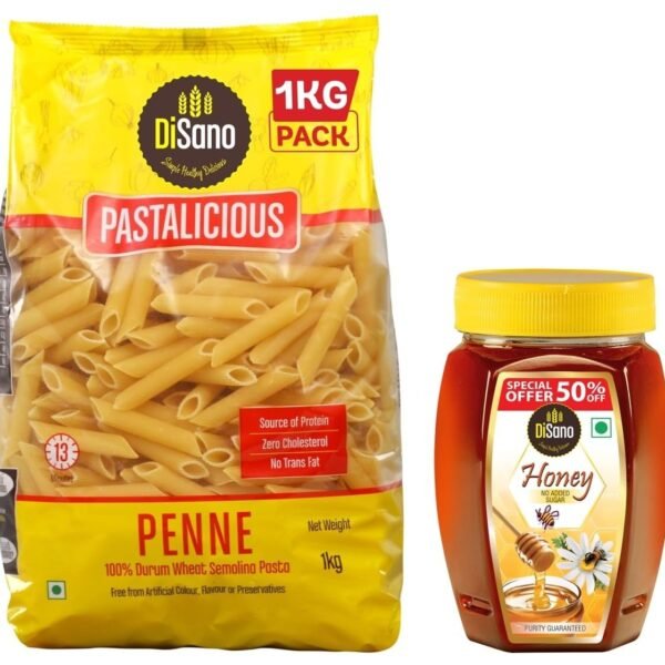 DiSano Pastalicious 100% Durum Wheat Penne Pasta, 1kg & DiSano Pure Honey 500 g (pack of 1) – Fast Shipping to USA & Canada