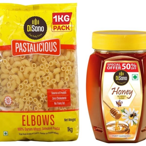 DiSano Pastalicious 100% Durum Wheat Macroni Pasta, Elbow, 1kg & DiSano Pure Honey 500 g (pack of 1) – Fast Shipping to USA & Canada