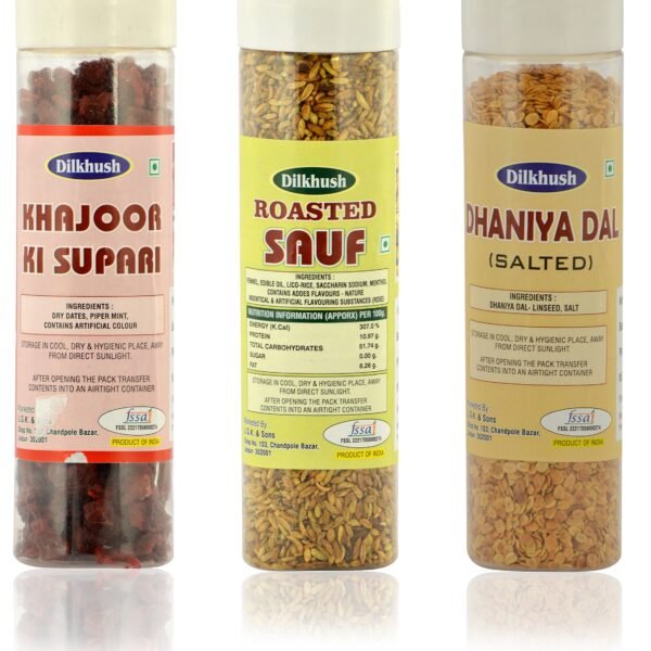 Dilkhush Khajoor Ki Supari and Roasted Sauf and Dhaniya Dal, 400 g (Combo of 3) – Fast Shipping to USA & Canada