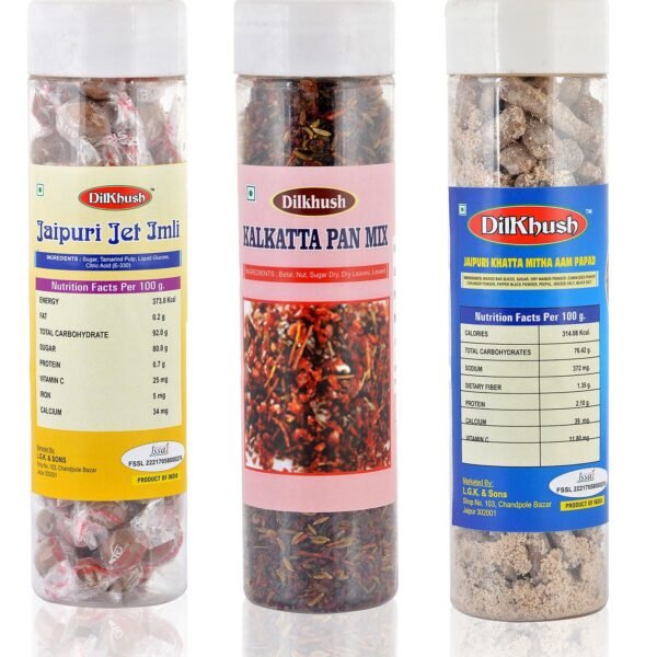 Dilkhush Combo of Jaipuri Jet Imli, Kalkatta Pan Mix and Jaipuri Aam Papad, 500 Grams, Pack of 3 – Fast Shipping to USA & Canada