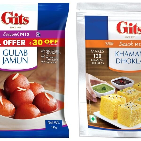 Gits Instant Gulab Jamun Dessert Mix, Makes 200 per Pack, Pure Veg, Delicious Indian Dessert and Mithai, 1Kg, Pack of 1 & Gits Instant Khaman Dhokla Snack Mix, 1kg – Fast Shipping to USA & Canada